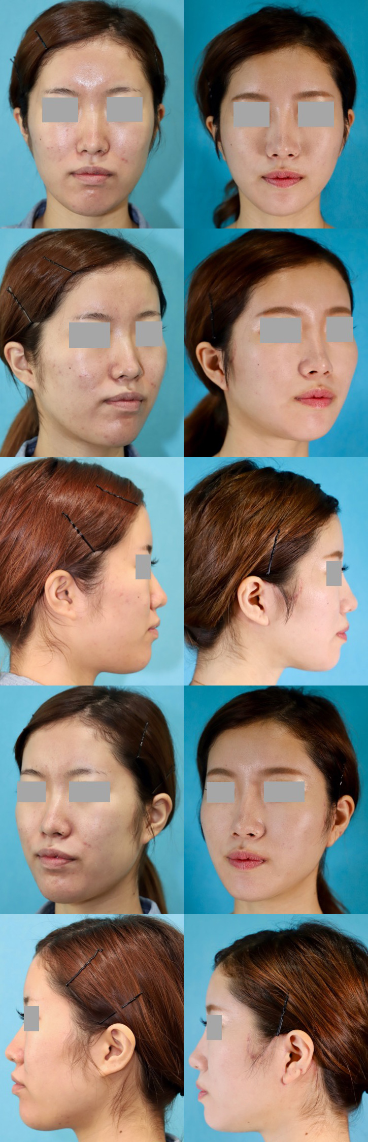 アゴ削り(Vライン形成)、隆鼻術(シリコンプロテーゼ)、ショートフェイスリフト、ネックリフト
