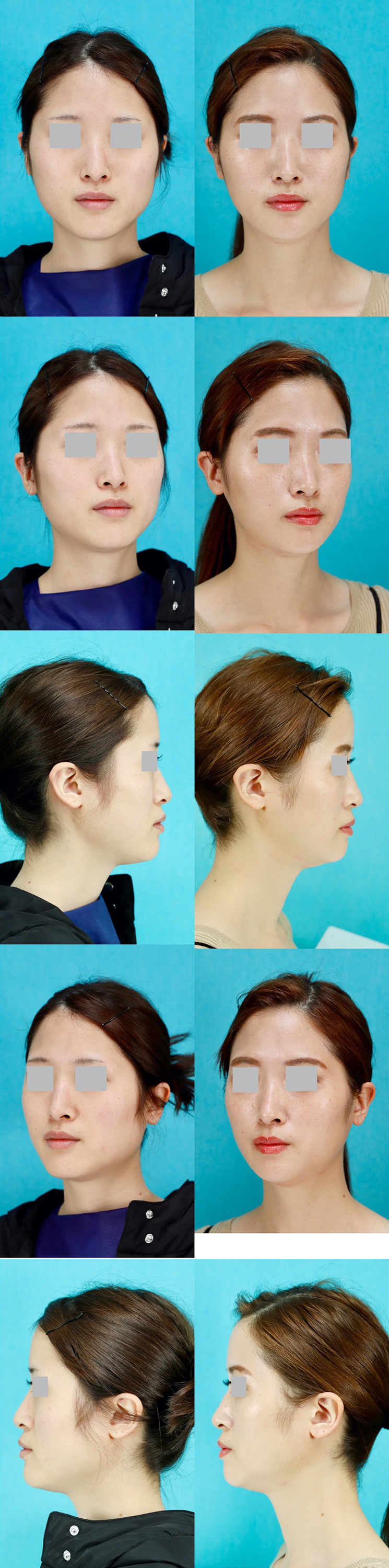 術後はフェイスラインが一回り小さくなりました。脂肪注入したことで顔の立体感が出て、顔がさらに小さく見えています。額は凹凸が少ない、丸い額になりました。