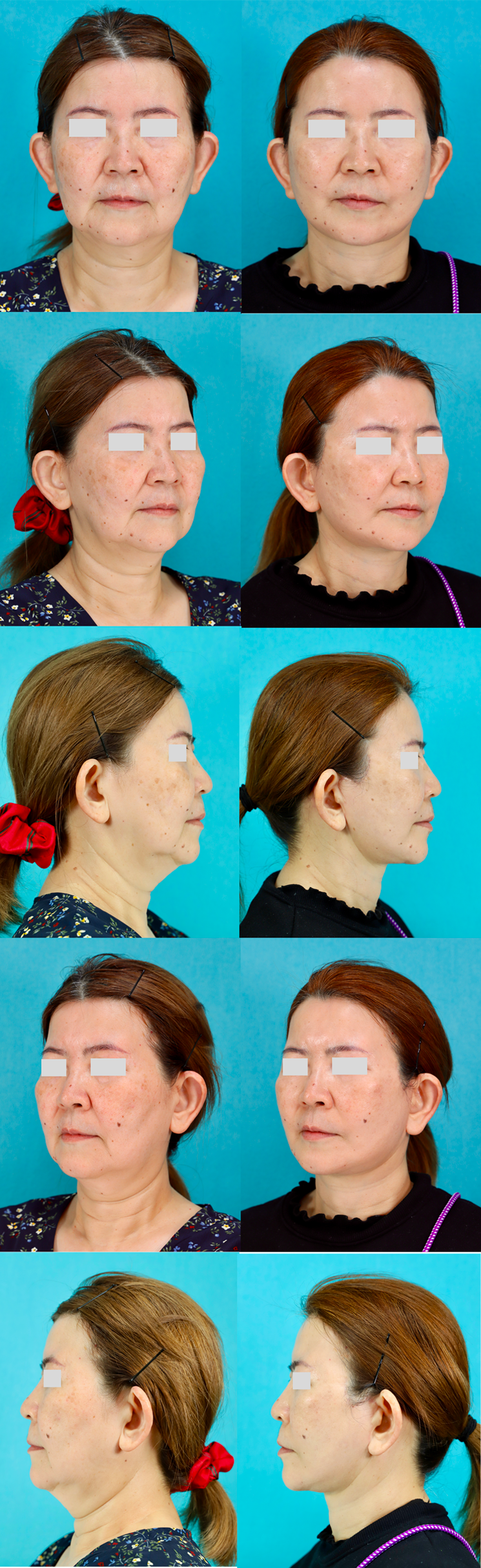患者さまは50代後半女性で、フェイスラインのたるみ、口元横の膨らみ(ジョール変形)、マリオネットライン、顎下のたるみを気にされていました。