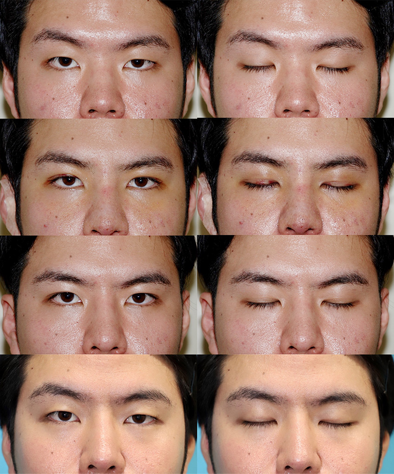 上から二重埋没法の術前、術後1週間、術後2ヶ月、二重埋没法抜糸後5ヶ月)