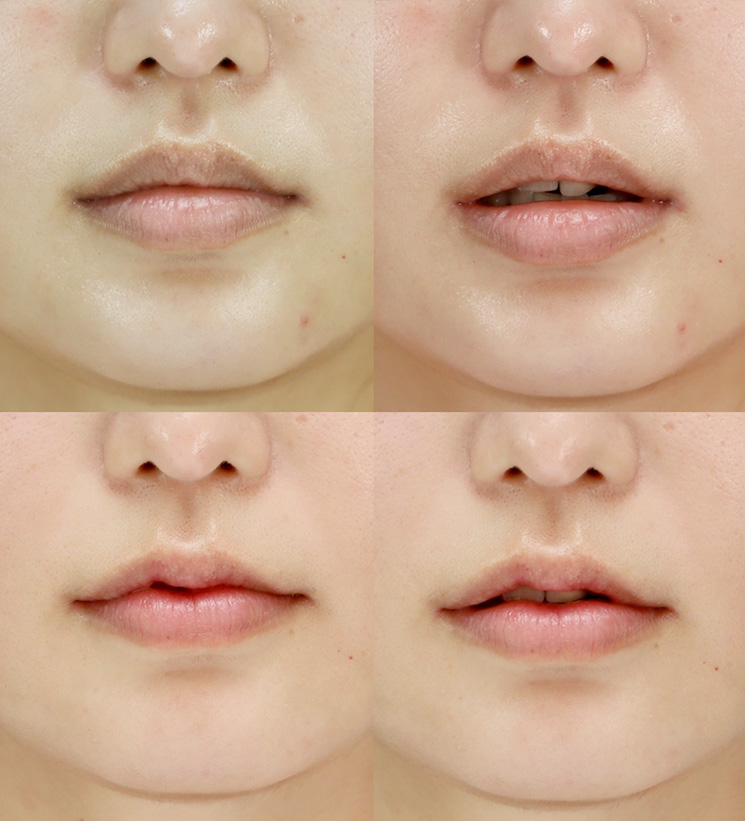 上:術前、下:術後1ヶ月、左:閉口、右:開口(拡大)