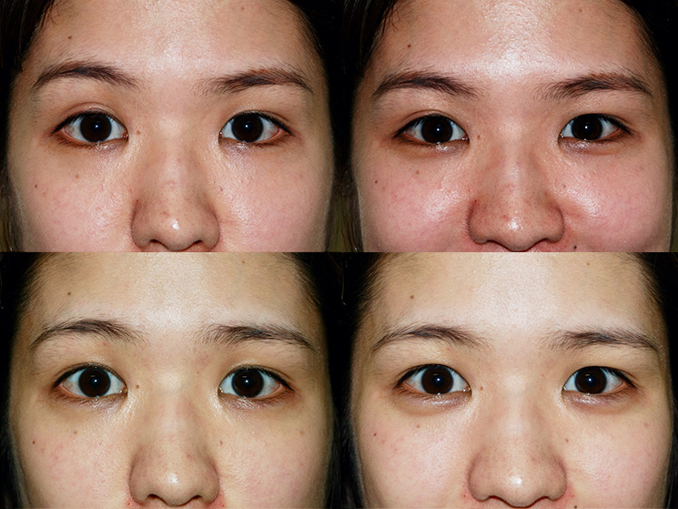 治療後3週間の時点では微笑んでないときはそんなに涙袋が大きいように見えませんが、涙袋は微笑み時に強調されますので、その点を考慮して注入します。入れすぎると不自然になりますので、注意が必要です。