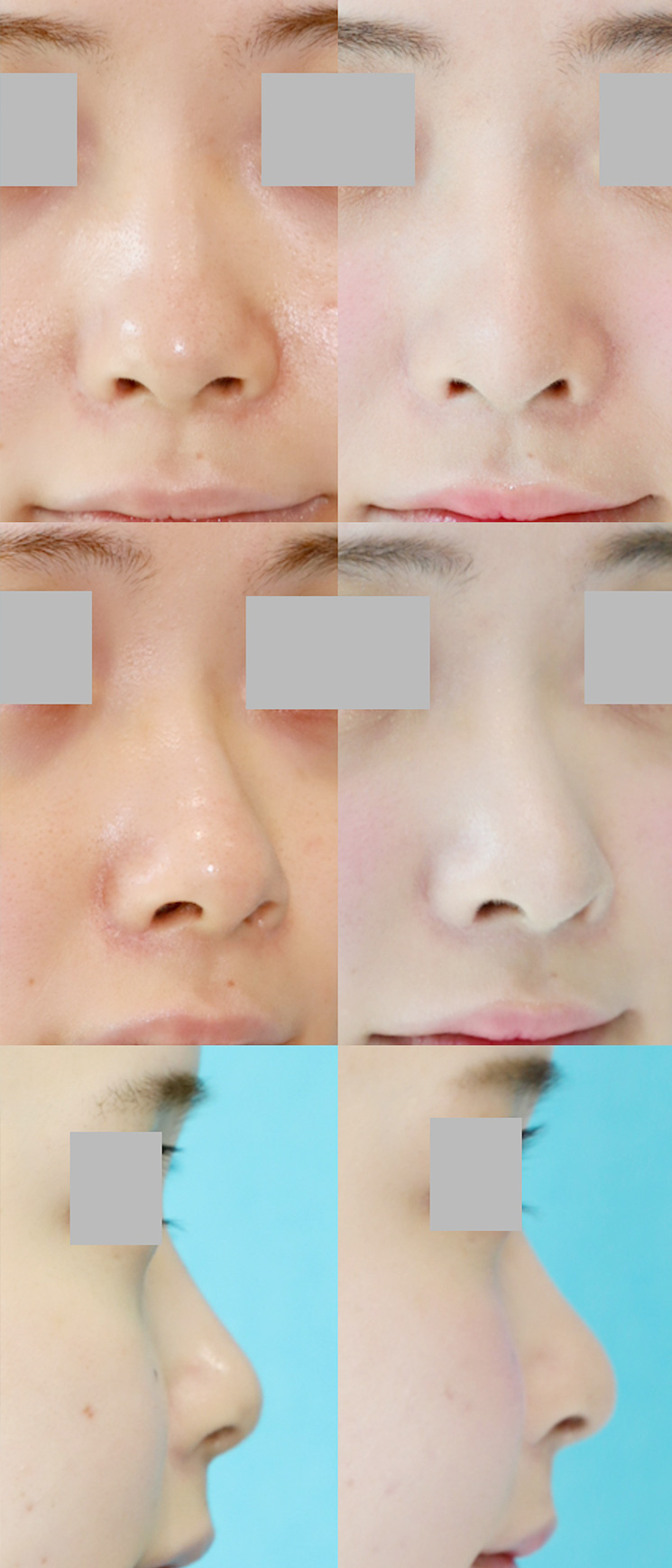 術後は鼻先が適度に小さくなり、鼻翼軟骨の輪郭が目立たなくなりました。側面でわずかに鼻先が高くなりました。