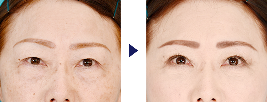 眼瞼下垂症手術、下眼瞼経結膜ハムラ法、眉毛下切開 モニター写真