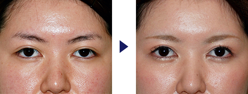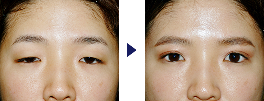 眼瞼下垂症手術、下眼瞼経結膜ハムラ法、眉毛下切開 モニター写真
